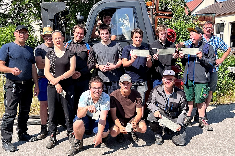 Im Juni fand für insgesamt elf Auszubildende bzw. Teilnehmer unserer berufsvorbereitenden Bildundsmaßnahmen aus dem Garten- und Landschaftsbau, der Klostergärtnerei, der Lehrküche sowie unserem Zentrallager ein Kurs zur Erlangung des Gabelstaperscheines statt. Die Ausbilder Anton Schrettle (Schlosserei) und Thomas Streicher (Zentrallager) führten hierzu die praktische sowie theoretische Ausbildung durch. Alle Teilnehmer konnten am Ende des 2-tägigen Kurses nach erfolgreicher Prüfung ihren Gablstaplerführerschein in Empfang nehmen.