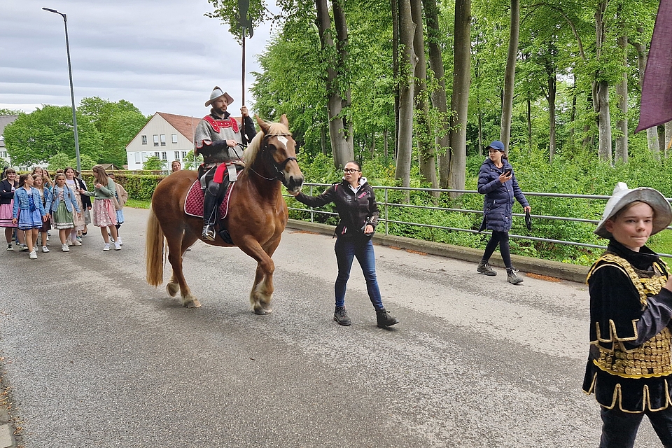 Im Anschluss an den Festzug ließen Schülerinnen und Schüler vor der Kapelle St. Florian Friedenstauben in den Himmel steigen. Norbert sei zu Lebzeiten darum bemüht gewesen, Frieden zwischen Menschen und Parteien zu stiften, erklärte Pater Christian. „Auch wir haben den Wunsch nach Frieden und senden deshalb dieses Zeichen in den Himmel.“